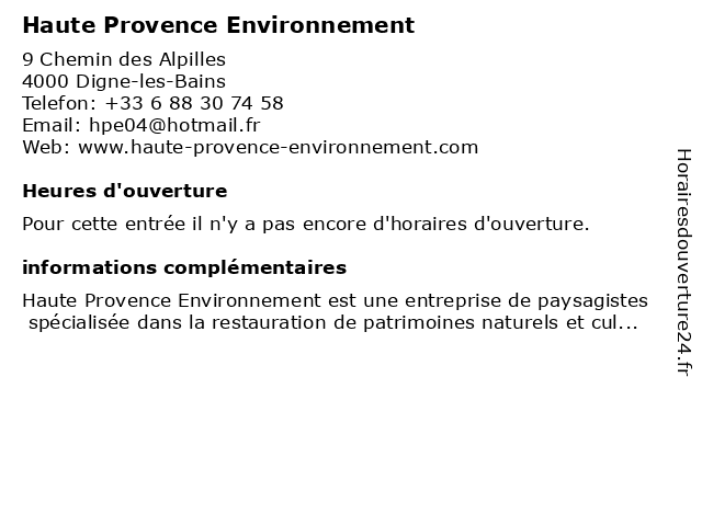 | Appeler Haute Provence Environnement | |