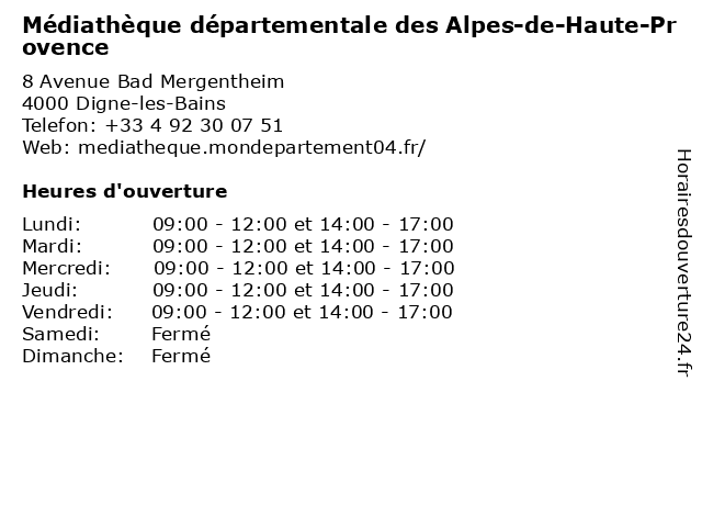 Termes de recherche pour Médiathèque départementale des Alpes-de-Haute-Provence:provence, de, des, alpes, haute, départementale, mediatheque |