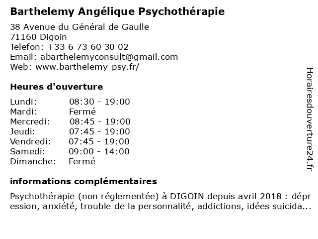 Termes de recherche pour Barthelemy Angélique Psychothérapie:barthelemy, angelique, psychotherapie |