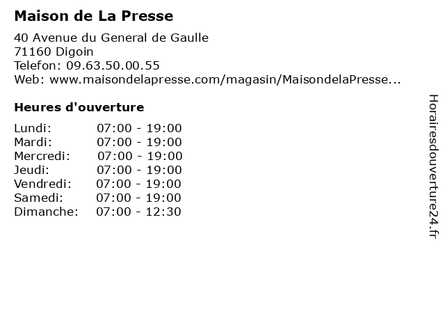 | 1 Maison de La Presse (Distance: 10,92 km) 4 Avenue Charles De Gaulle, 71600 Paray le monial cadeaux, carterie, confiserie-boissons-food, de, française des jeux, la, librairie, maison, papeterie, pmu, presse, tabac 2 Maison de La Presse (Distance: 14,58 km) 22 Rue De La Liberte, 71130 Gueugnon cadeaux, carterie, confiserie-boissons-food, de, française des jeux, la, librairie, maison, papeterie, pmu, presse, tabac 3 Nespresso (MAISON DE LA PRESSE) (Distance: 14,58 km) 22 Rue de la Liberte, 71130 Gueugnon accessories, coffee, de, la, machines, maison, nespresso, points de recyclage, presse, services 4 Mag Presse (Distance: 14,60 km) 3 Rue De La Republique, 71130 Gueugnon mag, magazine, presse, services 6 Croix-Rouge Française (Distance: 10,75 km) 11 Boulevard Henri Régnier, 71600 Paray-le-Monial bénévole, croix, croix-rouge, française, locale, paray-le-monial, rouge, secours, unité |