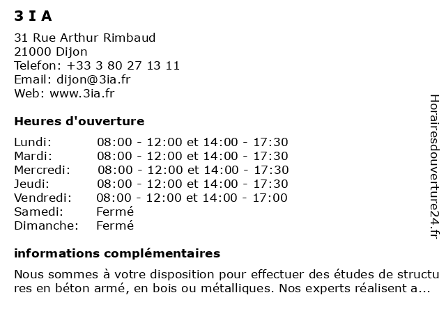 | Lundi | 08:00-12:00 et 14:00-17:30 |