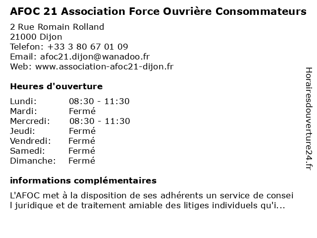 Termes de recherche pour AFOC 21 Association Force Ouvrière Consommateurs:21, force, association, consommateurs, ouvriere, afoc |