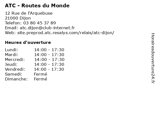 1 Artisans du Monde (Distance: 0,62 km) 7 rue Charrue, 21000 Dijon artisans, clothing, cosmetics, crafts, du, jewelry, linens, monde, musical instruments, tableware 2 Jetset Voyages / Autour du Monde Voyages (Distance: 2,22 km) 10 Rue Léon Mauris, 21000 Dijon agence, autour, billet d'avion et hôtel pour votre club, du, jetset, monde, séjour, voyages 3 Selectour - Autour du Monde Voyages (Distance: 2,25 km) 10 Rue Léon Mauris, 21000 Dijon autour, billets de train, du, monde, selectour, séjours, vols, voyage, voyages 4 Maisons du Monde (Distance: 4,45 km) 104 allée de Jason, 21000 Dijon du, décoration, maison, maisons, monde, table, vaisselle 6 |