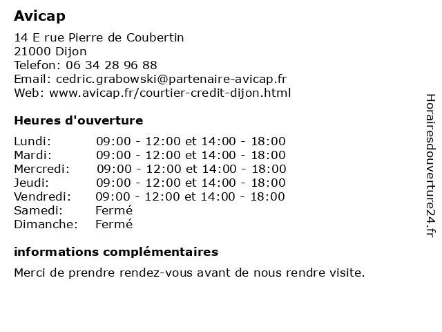 | Mercredi | 09:00-12:00 et 14:00-18:00 |