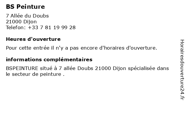 2 Peinture Rénovation Brulé (Distance: 2,32 km) 21 Rue Charles Poisot, 21000 Dijon brulé, peinture, rénovation 4 Centre Est Peinture Distribution (Distance: 3,54 km) 10 rue des frères Montgolfier, 21300 Chenôve centre, distribution, décoration, est, matériel, outillages, peinture, peintures, pose, travaux 5 Volkswagen ( Atelier Peinture Carrosserie ) (Distance: 4,86 km) . Rue des Ruchottes, 21121 Ahuy atelier, automobiles, carrosserie, concessionnaire, garage, motos, peinture, volkswagen 6 Bibliothèque BS Droit (Distance: 4,98 km) 4 Boulevard Gabriel, 21072 Dijon bibliothèque, bs, droit, livre, médiathèque, services |