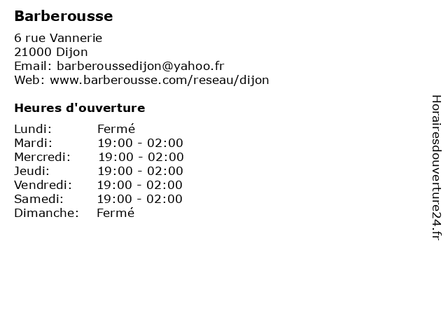 1 Maître Natacha Barberousse - Avocate (Distance: 0,94 km) 14 rue Jules Violle, 21000 Dijon avocate, avocats, barberousse, civils, droits, juridiques, maître, natacha 2 Benja Burger (Distance: 0,02 km) 15 Rue Jean-Jacques Rousseau, 21000 Dijon bar, benja, burger, hambuger, menu, plats, restaurant 3 La Cave se Rebiffe (Distance: 0,02 km) 57 rue Vannerie, 21000 Dijon bar, bar à vins, brasserie, cave, la, rebiffe, restauration, se 4 Restaurant L'Aspérule (Distance: 0,07 km) 43 Rue Jean-Jacques Rousseau, 21000 Dijon bar, brunch, l'aspérule, restaurant, service 5 La Bourgogne (Distance: 0,08 km) 20 Place de la République, 21000 Dijon bar, bistro, bistrot, bourgogne, brasserie, café, la, restaurant, restauration 6 Hotel Le Petit Tertre (Distance: 0,21 km) 41 Rue Verrerie, 21000 Dijon bar, hotel, le, petit, restaurant, service, tertre |