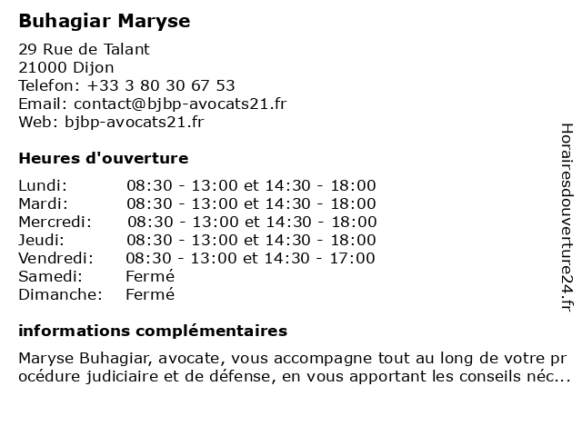 | Lundi | 08:30-13:00 et 14:30-18:00 |