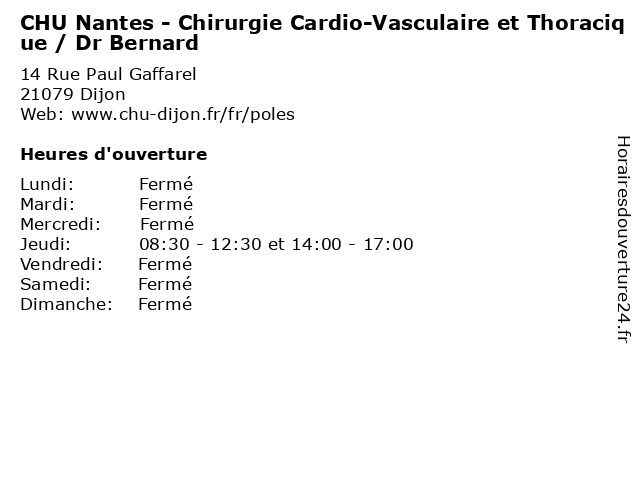 | Jeudi | 08:30-12:30 et 14:00-17:00 |