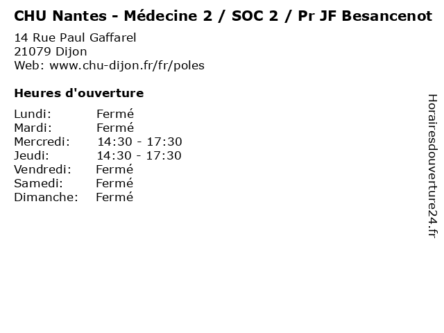 Termes de recherche pour CHU Nantes - Médecine 2 / SOC 2 / Pr JF Besancenot:nantes, bureau, med, medecine, maladie, chu, traitement, soc, médecin, consultation, jf, dr, pratique, pr, therapie, besancenot |