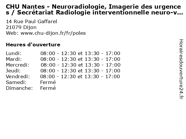 | Jeudi | 08:00-12:30 et 13:30-17:00 |