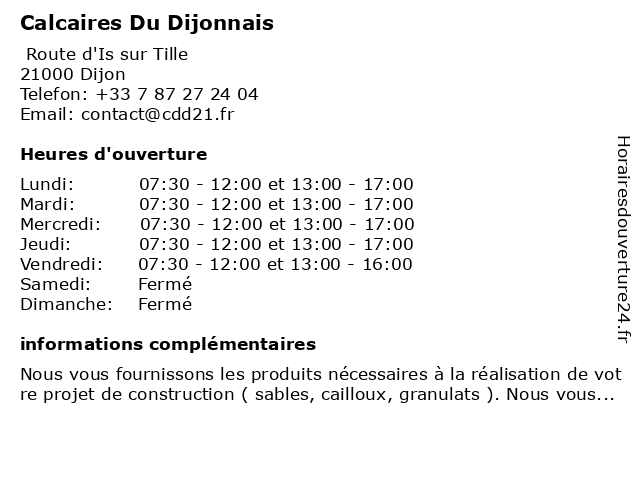 Lundi | 07:30-12:00 et 13:00-17:00 |