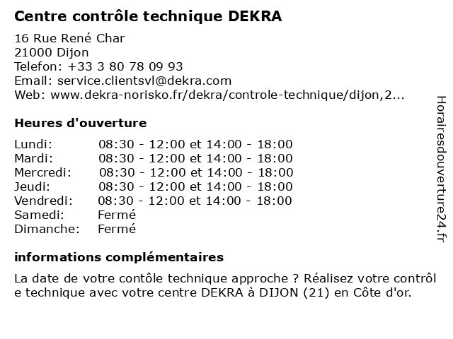 Description de l'entreprise :Préparer votre contrôle techniquePour préparer votre contrôle technique dans notre centre DEKRA de Dijon, vous pouvez vérifier en amont différents points comme les pneumatiques, la visibilité, le niveau d'huile ou encore l'habitacle. Pour tout savoir, consultez notre vidéo. Voir l'offre |