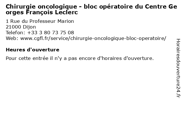 | Appeler Chirurgie oncologique - bloc opératoire du Centre Georges François Leclerc | |