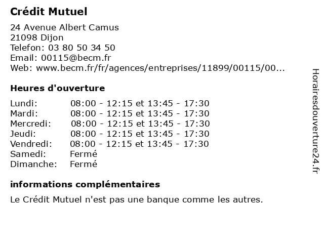 1 Crédit Mutuel (Distance: 0,04 km) 26 Avenue Albert Camus, 21000 Dijon agence, assurance, bancaire, banque, crédit, mutuel 2 Crédit Mutuel (Distance: 0,04 km) 24 Avenue Albert Camus, 21000 Dijon agence, assurance, bancaire, banque, crédit, mutuel 3 Crédit Mutuel (Distance: 0,14 km) 1 Avenue de la Decouverte, 21000 Dijon agence, assurance, bancaire, banque, crédit, mutuel 4 Crédit Mutuel (Distance: 1,36 km) 4 Rue Jeanne Barret, 21066 Dijon agence, assurance, bancaire, banque, crédit, mutuel 5 Crédit Mutuel (Distance: 2,68 km) 15 Boulevard de la Marne, 21000 Dijon agence, assurance, bancaire, banque, crédit, mutuel 6 Crédit Mutuel (Distance: 3,49 km) 12 Place Darcy, 21054 Dijon agence, assurance, bancaire, banque, crédit, mutuel |