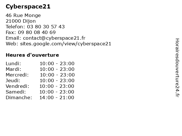| Dimanche | 14:00-21:00 |