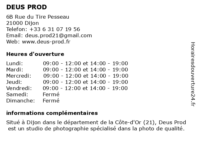 | Lundi | 09:00-12:00 et 14:00-19:00 |