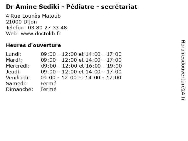 | Lundi | 09:00-12:00 et 14:00-17:00 |