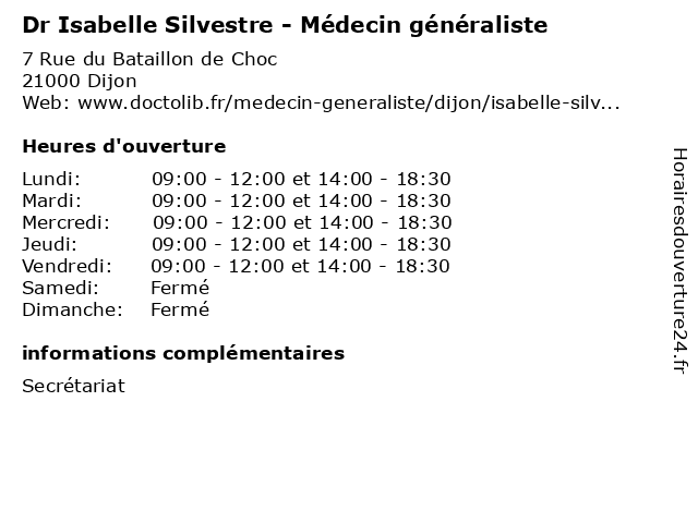 | Mercredi | 09:00-12:00 et 14:00-18:30 |