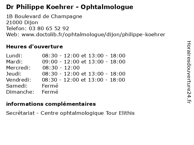| Lundi | 08:30-12:00 et 13:00-18:00 |