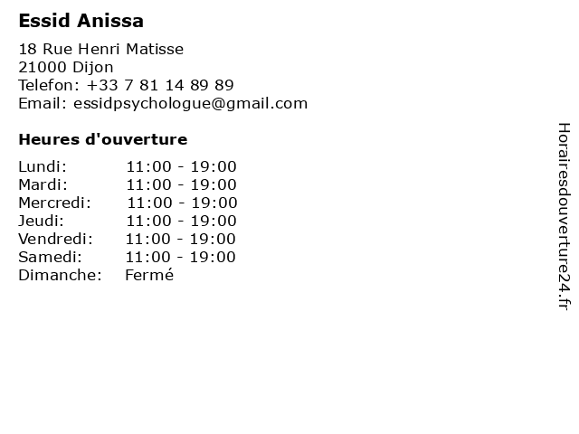 | Jeudi | 11:00-19:00 |