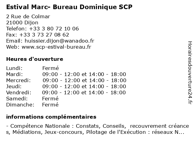 | Dimanche | Fermé |