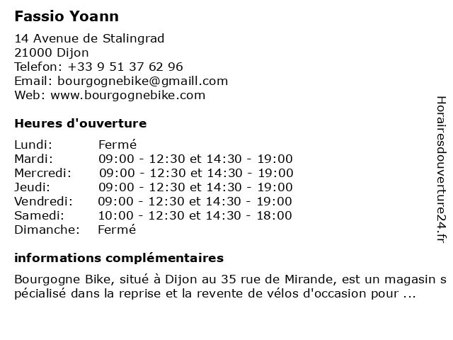 | Samedi | 10:00-12:30 et 14:30-18:00 |