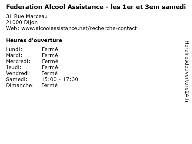 Termes de recherche pour Federation Alcool Assistance - les 1er et 3em samedi:et, les, services, 1er, assistance, public, samedi, fédération, alcool, 3em |