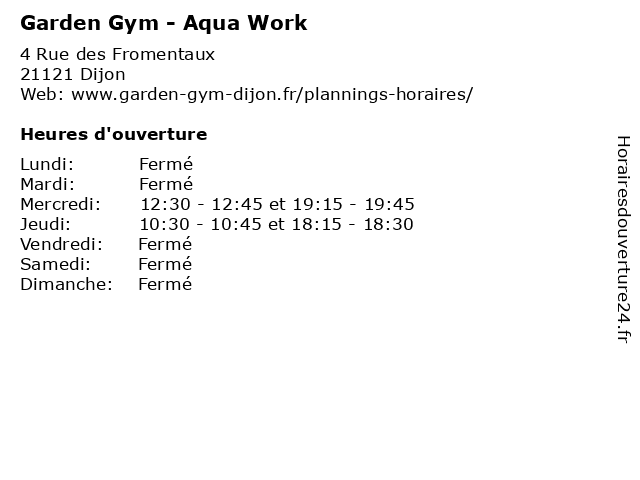 Termes de recherche pour Garden Gym - Aqua Work:centre, garden, aqua, gym, work, cours, la santé, l'exercice, le sport, les muscles |