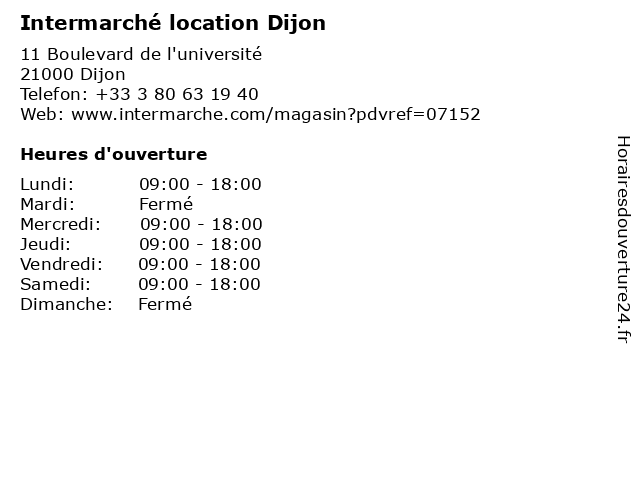 1 Intermarché location Dijon (Distance: 3,69 km) 30 Boulevard ga bachelard, 21000 Dijon dijon, intermarché, location 2 Intermarché SUPER Dijon (Distance: 0,00 km) 11 Boulevard de l'université, 21000 Dijon dijon, intermarché, super 4 Intermarché SUPER Dijon (Distance: 1,61 km) 12 Boulevard Georges Clemenceau, 21000 Dijon dijon, intermarché, super 5 Carrefour Location (Distance: 1,61 km) - Route départementale 974, 21000 Dijon automobiles, carrefour, déménagements, location, véhicules 6 Yespark, location de parking au mois - Préfecture - Parking Dijon (Distance: 1,81 km) 32 Rue Parmentier, 21000 Dijon au, de, dijon, location, mois, parking, préfecture, yespark |