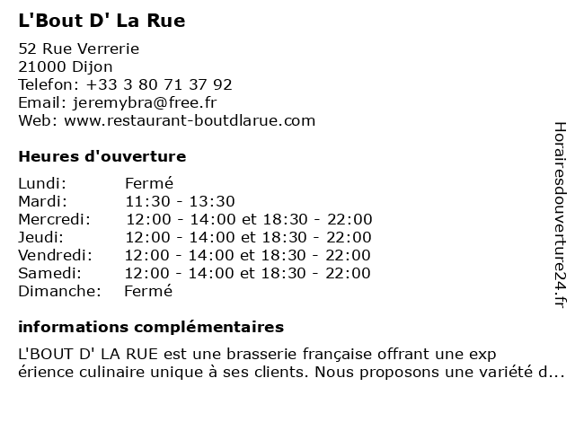 | Vendredi | 12:00-14:00 et 18:30-22:00 |