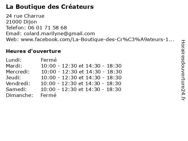 | Mardi | 10:00-12:30 et 14:30-18:30 |