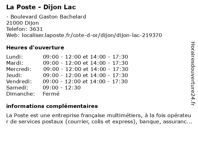 Termes de recherche pour La Poste - Dijon Lac:poste, relais, la, dijon, lac, agence, postale, colis, expédition, courriers |