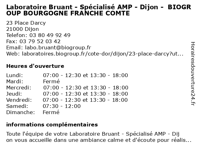 | Lundi | 07:00-12:30 et 13:30-18:00 |