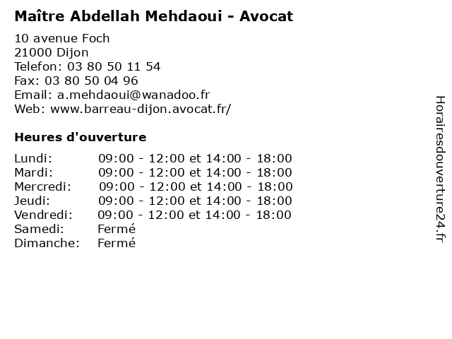 | Lundi | 09:00-12:00 et 14:00-18:00 |