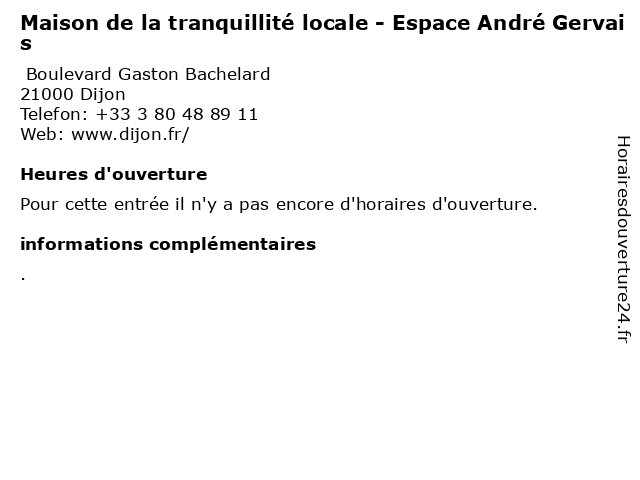 | Appeler Maison de la tranquillité locale - Espace André Gervais | |
