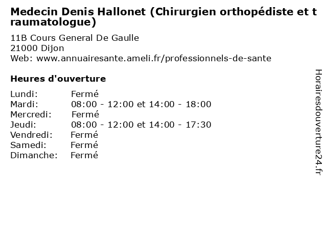 | Jeudi | 08:00-12:00 et 14:00-17:30 |