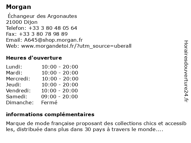1 Morgan (Distance: 0,06 km) Avenue de Langres, 21000 Dijon blazer femme, cardignan femme, chaussures femme, gilet femme, jean femme, magasin femme, magasin vêtements, manteau femme, mode femme, morgan, pull femme, robe femme, sac femme, t-shirt femme, tailleur femme, top femme, vêtements femmes 3 Morgan (Distance: 1,75 km) . Route de Langres, 21078 Dijon beaute, bijoux, chaussures, enfants, maison, mode femme, mode homme, morgan, restaurant, service, sport 5 Morgan (Distance: 6,50 km) Avenue de Bourgogne, 21800 Quetigny blazer femme, cardignan femme, chaussures femme, gilet femme, jean femme, magasin femme, magasin vêtements, manteau femme, mode femme, morgan, pull femme, robe femme, sac femme, t-shirt femme, tailleur femme, top femme, vêtements femmes 6 |