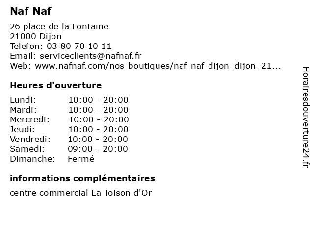 3 Naf Naf (Distance: 11,39 km) Ctre Cial Geant Casino, 21300 Chenove accessoires, divers, habillement, magasins, naf 5 SV GARAGE (Distance: 1,78 km) 10 Allée du Breuil, 21490 Ruffey-lès-Echirey achats ventes vehicules, garage, peinture tous supports, réparation révisions toutes marques, sv, ventes accessoires 6 Celio (Distance: 2,14 km) . Route de Langres, 21078 Dijon accessoires, bijoux, celio, chaussures, maroquinerie, mode, vêtements |