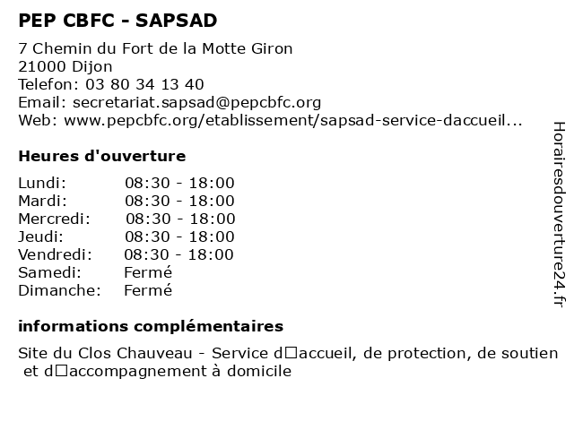 1 PEP CBFC - Accompagnement à la scolarité (Distance: 0,01 km) 3 Chemin du Fort de la Motte Giron, 21000 Dijon accompagnement, aides, cbfc, chauveau, clos, du, la, pep, scolarité, site, social, socio-éducatif, équipe, établissements 2 PEP CBFC - ERHR (Distance: 0,04 km) 9 Chemin du Fort de la Motte Giron, 21000 DIJON accompagnement, aides, cbfc, erhr, pep, social, socio-éducatif, équipe, établissements 3 PEP CBFC - Accueil de Loisirs Extrascolaire Fontaine d’Ouche (Distance: 0,41 km) 1 allée du Roussillon, 21000 Dijon accompagnement, accueil, aides, cbfc, de, d’ouche, extrascolaire, fontaine, loisirs, pep, social, socio-éducatif, équipe, établissements 4 PEP CBFC - SAEA (Distance: 0,43 km) 5 rue du Tire Pesseau, 21000 Dijon accompagnement, aides, cbfc, pep, saea, social, socio-éducatif, équipe, établissements 5 PEP CBFC - La P’tite Boutique (Distance: 0,43 km) 5 rue du Tire Pesseau, 21000 DIJON accompagnement, aides, boutique, cbfc, la, pep, p’tite, social, socio-éducatif, équipe, établissements 6 PEP CBFC - SESSAD Des Pays (Distance: 0,46 km) 1 Avenue du Lac, 21000 DIJON accompagnement, aides, cbfc, des, pays, pep, sessad, social, socio-éducatif, équipe, établissements |