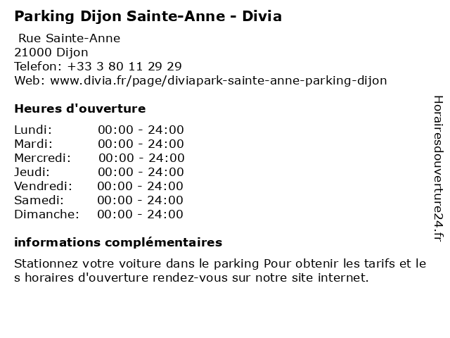 1 Onepark / Sainte-Anne Parking (Distance: 0,03 km) 14 Rue Sainte-anne, 21000 Dijon anne, onepark, parking, sainte, services 2 Parking Dijon Dauphine - Divia (Distance: 0,33 km) 17 Rue Bossuet, 21000 Dijon dauphine, dijon, divia, parking 3 Parking Dijon Tivoli - Divia (Distance: 0,39 km) 1 Rempart Tivoli, 21000 Dijon dijon, divia, parking, tivoli 4 Onepark / Condorcet Parking (Distance: 0,40 km) 2 Rue Belle Ruelle, 21000 Dijon condorcet, onepark, parking, services 5 Parking Dijon Condorcet - Divia (Distance: 0,40 km) Rue Condorcet, 21000 Dijon condorcet, dijon, divia, parking 6 Parking Dijon Monge - Divia (Distance: 0,53 km) 22 Rue des Corroyeurs, 21000 Dijon dijon, divia, monge, parking |