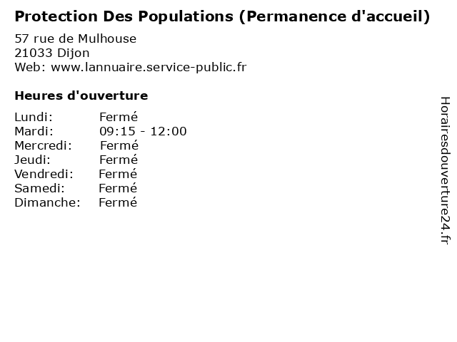 Termes de recherche pour Protection Des Populations (Permanence d'accueil):des, administration, services, protection, permanence, services publics, d'accueil, assoc, populations |