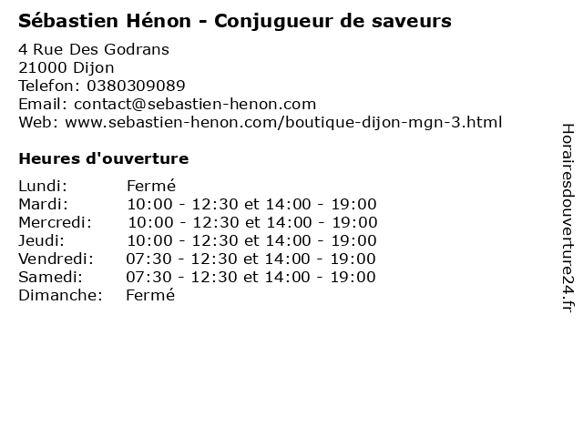 | Mardi | 10:00-12:30 et 14:00-19:00 |