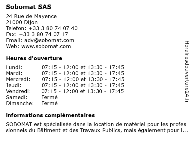 | Lundi | 07:15-12:00 et 13:30-17:45 |