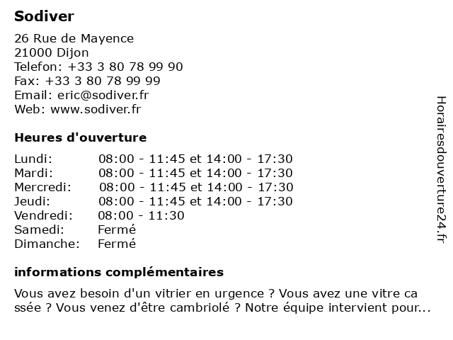| Lundi | 08:00-11:45 et 14:00-17:30 |