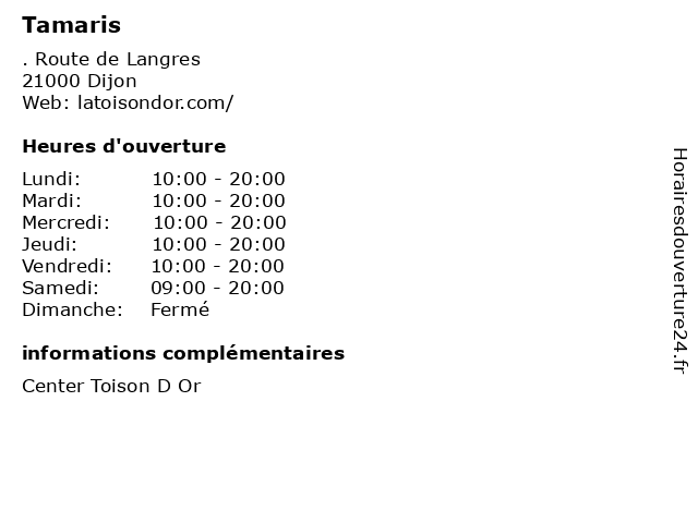 Termes de recherche pour Tamaris:toison, dijon, commercial, centre, tamaris, or |