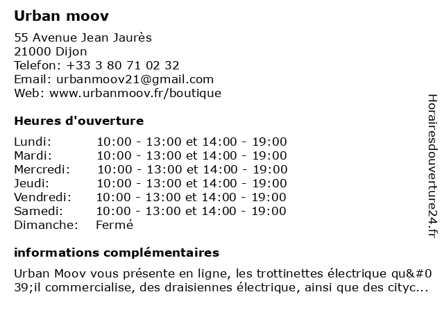 | Mercredi | 10:00-13:00 et 14:00-19:00 |