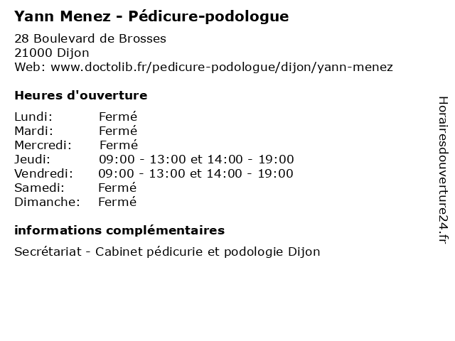 1 Justine Andriot - Pédicure-podologue - secretariat (Distance: 0,29 km) 2b Avenue Victor Hugo, 21000 Dijon andriot, justine, médecin, médecine, médical, pharmaceutique, podologue, pédicure, secfretariat, secretariat, traitement 2 Antoine Lambert - Pédicure-podologue (Distance: 0,29 km) 2B Avenue Victor Hugo, 21000 Dijon antoine, cheville, lambert, orteil, pied, podologue, pédicure 3 Anne-Rose Dumas - Pédicure-podologue (Distance: 0,35 km) 14 Boulevard de Sévigné, 21000 Dijon anne, dumas, pedicure, pied, podologue, pédicure, rose, sante 4 Olivier Moreau - Pédicure-podologue (Distance: 0,36 km) 39 Boulevard de la Trémouille, 21000 Dijon moreau, olivier, pieds, podologue, pédicure, soins 5 Gilles Lutinier - Pédicure-podologue (Distance: 0,36 km) 39 Boulevard de la Trémouille, 21000 Dijon gilles, lutinier, orthesiste, pied, podologue, pédicure, sante 6 Olivier Cabourdin - Pédicure-podologue - secretariat (Distance: 0,44 km) 7 Rue Sambin,, 21000 Dijon cabourdin, médecin, médecine, médical, olivier, pharmaceutique, podologue, pédicure, secfretariat, secretariat, traitement  |