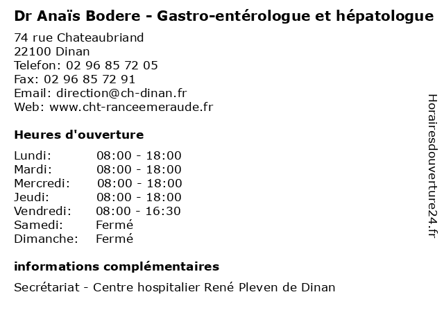 1 Dr Cédric Dufilhol - Gastro-entérologue et hépatologue (Distance: 0,00 km) 74 rue Chateaubriand, 22100 Dinan cedric, consultation, cédric, docteur, dr, dufilhol, entérologue, et, gastro, hépatologue, med, médecin, médecine, traitement 2 Dr David Cuen - Gastro-entérologue et hépatologue (Distance: 0,00 km) 74 rue Chateaubriand, 22100 Dinan consultation, cuen, david, docteur, dr, entérologue, et, gastro, hépatologue, med, médecin, médecine, traitement 3 Medecin Jean Yves Luherne (hépatologue) (Distance: 1,37 km) 1 Yves Guyot, 22100 Dinan docteur, hépatologue, jean, luherne, medecin, sante, services, yves 4 Dr Hervé Vidal - Gastro-entérologue et hépatologue (Distance: 2,15 km) 1 Rue de la Mousson, 22100 Taden dr, enterelogue, entérologue, et, gastro, hepatolgue, hervé, hépatologue, soins, vidal 5 Dr Anaïs Bodere - Gastro-entérologue et hépatologue (Distance: 21,70 km) 1 rue de la Marne, 35403 Saint-Malo anais, anaïs, bodere, consultation, docteur, dr, entérologue, et, gastro, hépatologue, med, médecin, médecine, traitement 6 Anais Kamel - Psychologue (Distance: 45,13 km) 8 Rue Jules Guesde, 35000 Rennes anais, folie, kamel, psychiatre, psychiatrie, psychiatrique, psychologue |