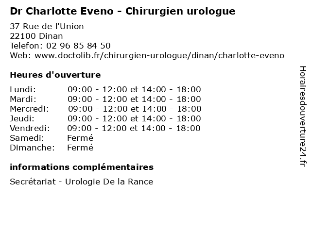 1 Dr Christian Faligan - Chirurgien urologue (Distance: 0,00 km) 37 Rue de l'Union, 22100 Dinan chirurgie, chirurgien, christian, dr, faligan, general, soins, urologue 2 Dr Charlotte Moal - Gériatre (Distance: 1,62 km) 74 rue Chateaubriand, 22100 Dinan charlotte, consultation, docteur, dr, gériatre, med, moal, médecin, médecine, traitement 3 Dr Charlotte Renard-Gouix - Médecin généraliste (Distance: 1,62 km) 74 rue Chateaubriand, 22100 Dinan charlotte, consultation, docteur, dr, gouix, généraliste, med, médecin, médecine, renard, traitement 4 Malemanche Charlotte Fabienne Julie (Distance: 3,26 km) Bel Air, 22100 Quevert charlotte, fabienne, julie, malemanche, restaurants 5 Dr Marine Chodez - Chirurgien urologue (Distance: 19,83 km) 1 Rue de la Maison Neuve,, 35400 Saint-Malo chirurgie, chirurgien, chodez, dr, general, marine, soins, urologue 6 Dr Jérôme Slama - Chirurgien urologue (Distance: 19,83 km) 1 Rue de la Maison Neuve, 35400 Saint-Malo chirurgien, dr, jerome, jérôme, médecin, médecins, médicaments, nucléaire, santé, secrétariat, slama, spécialiste, urologue |