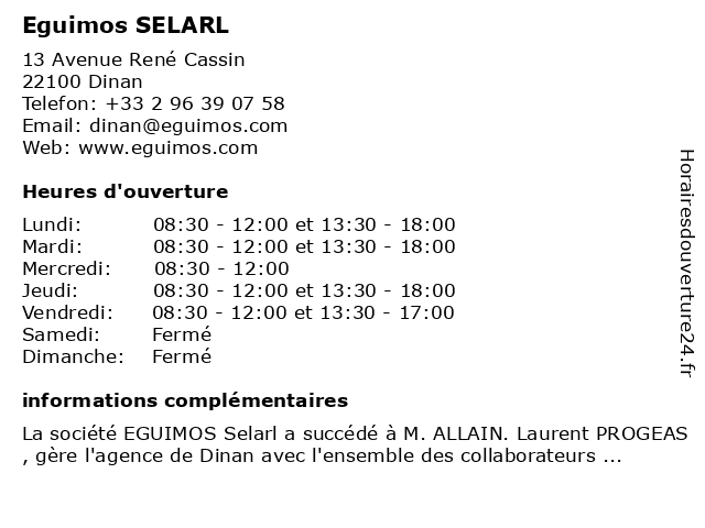 Lundi | 08:30-12:00 et 13:30-18:00 |
